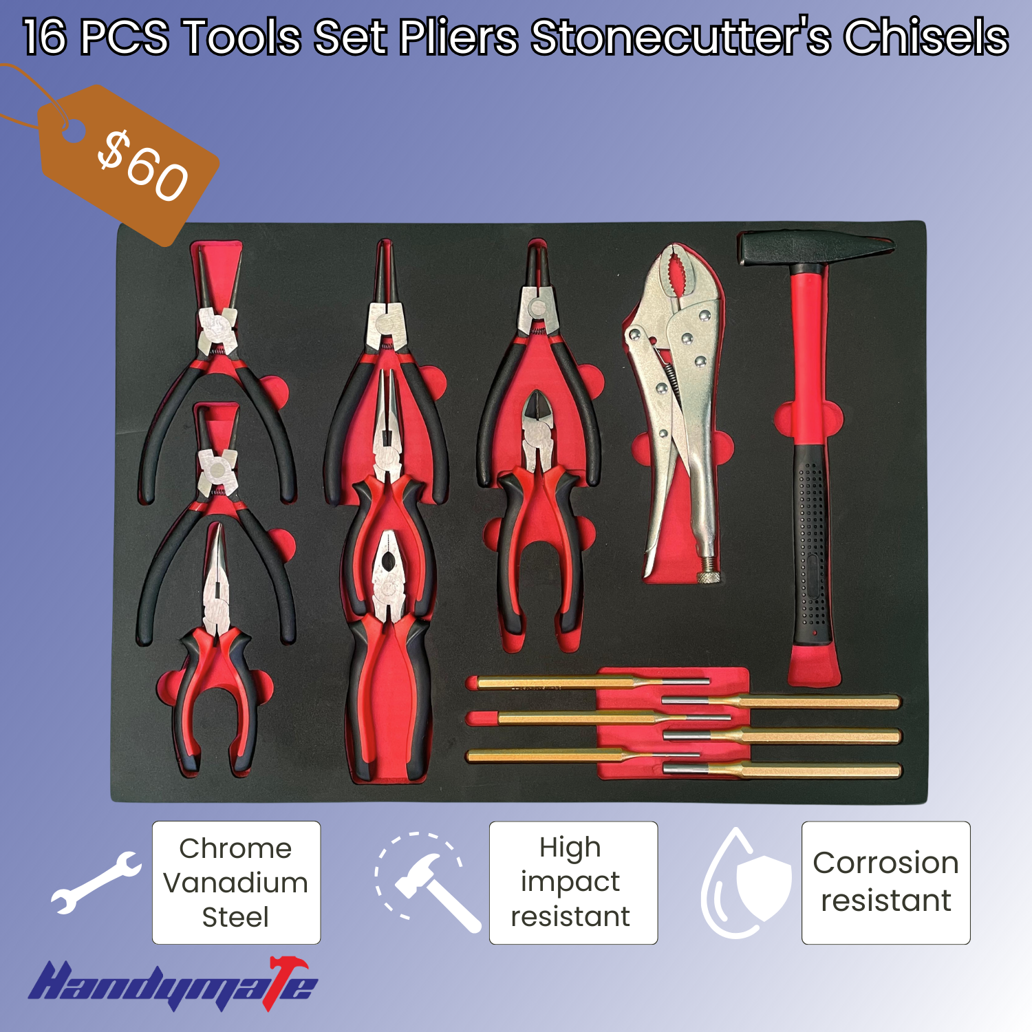 16 PCS Tools Set Pliers Stonecutter’s Chisels