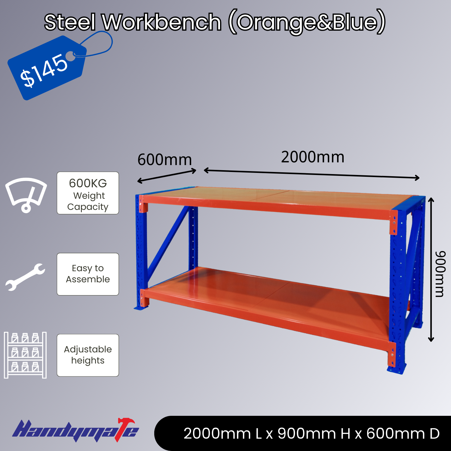 2Mx0.9Mx0.6M 600KG Capacity Steel Workbench (Orange&Blue)
