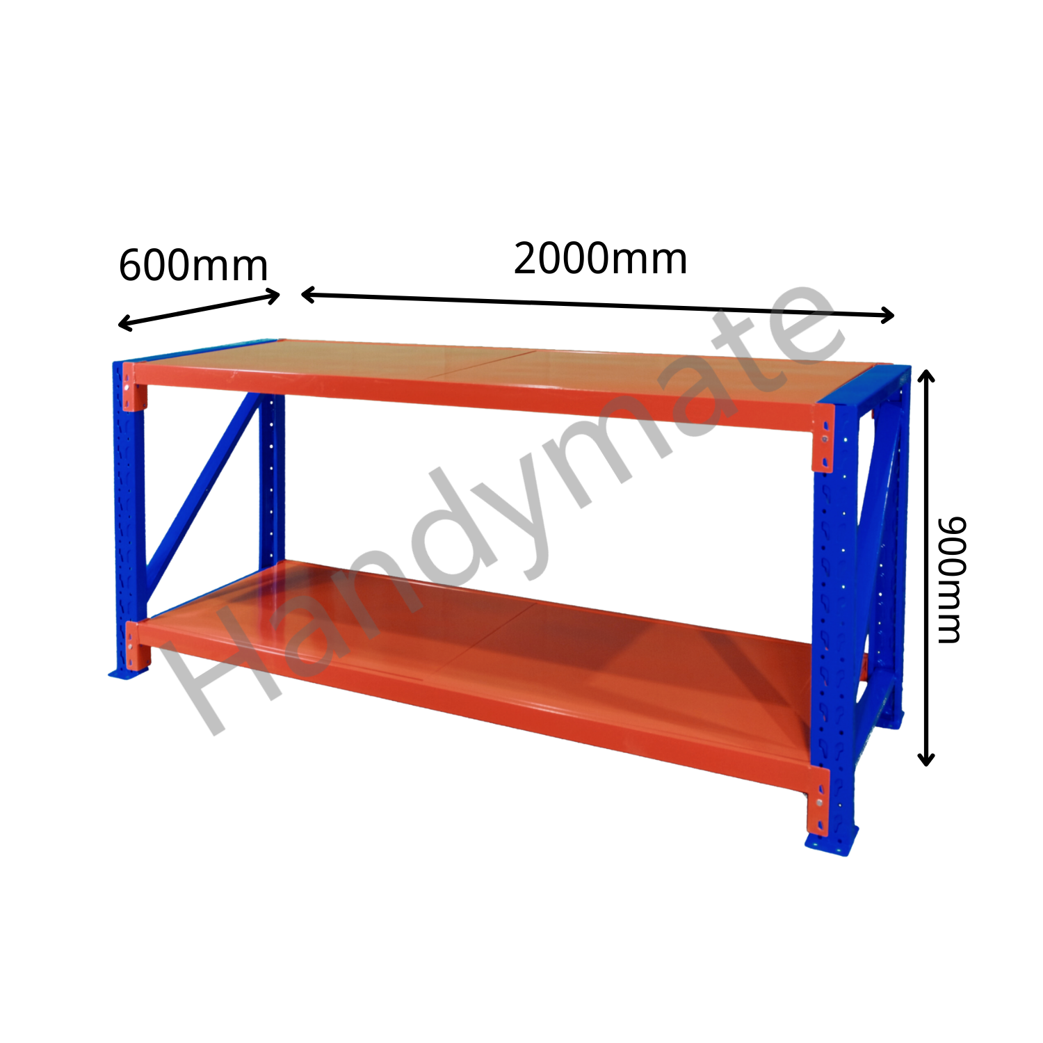 2Mx0.9Mx0.6M 600KG Garage Warehouse Steel Workbench 2 Levels Industrial Style (Orange&Blue)