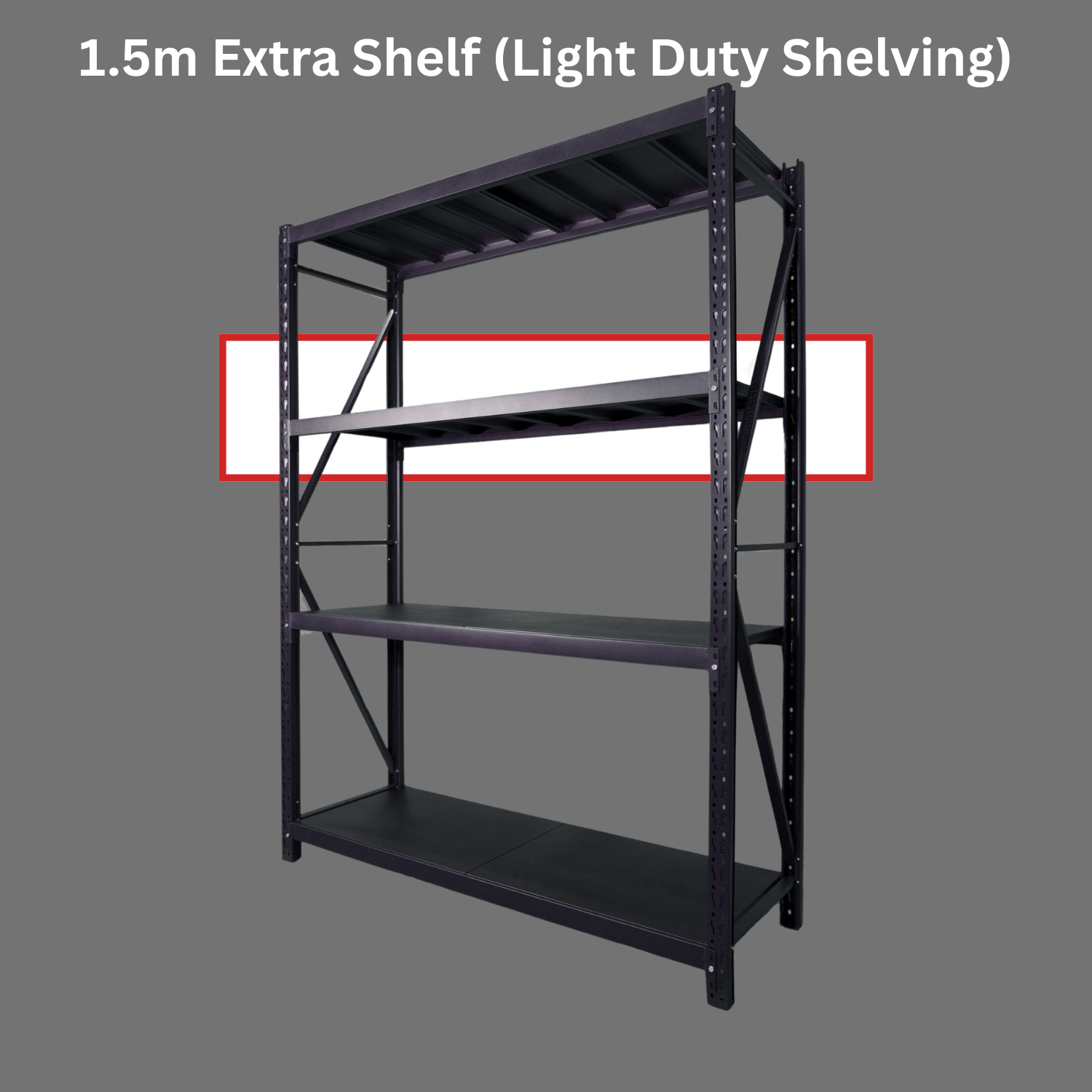 Extra shelves $35 per shelf (for 1.5m LIGHT DUTY shelving only)